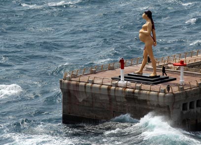 פסל "האם הבתולה" של הירסט על המזח במונקו (AFP)
