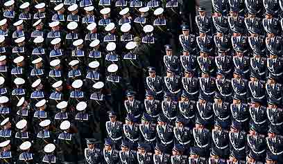 מינין ופוז'רסקי חולשים על מצעד הצבא בכיכר האדומה (צילום: AFP)