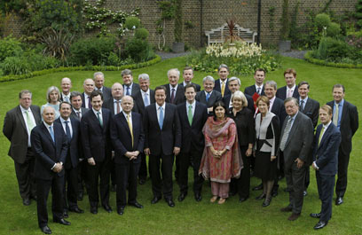 ראש הממשלה הטרי קמרון, סגנו קלג וחברי הקבינט התכנסו לישיבתם הראשונה וניסו להשאיר את המחלוקות בצד