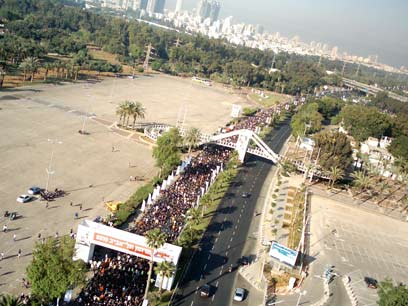 המרתון, בצילום מהאוויר. "צריך לחנך טוב יותר את הרצים" (צילום: g.g)