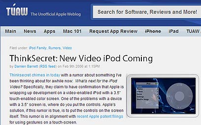 ב-2006 היה נדמה שזה סוף סוף קורה: אתר שנקרא "הבלוג הלא רשמי של אפל" דיווח כי אפל עומדת לחשוף iPod עם מסך מלא.