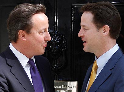 ההרמוניה השוררת בין ראש ממשלת בריטניה, דיוויד קמרון, לסגנו ניק קלג, מנהיגיה הטריים של בריטניה, מגולמת במיטבה בתמונותיהם המשותפות. למרות שהבריטים מתחילים להתרגל להנהגה החדשה, נראה שבכל יום שעובר, קשה יותר להבדיל בין השניים.