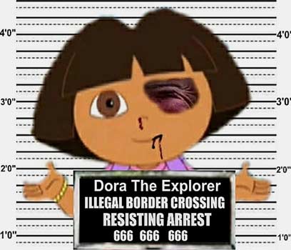 דמותה התמימה והמצוירת של דורה החוקרת, עברה שינוי משמעותי וכואב: היא סובלת מפנס בעין, שפה ואף מדממים ואוחזת בשלט המתעד את פשעיה - חצייה בלתי חוקית של הגבול האמריקני. כל זאת, במסגרת קמפיין שערורייתי חדש של ארגון המתנגד לחוק חדש שהוציאה מדינת אריזונה, נגד ההגירה הבלתי חוקית לארצות הברית.