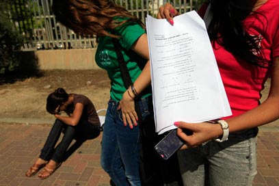 תלמידות מציגות את הבגרות. "הבנו שכולנו נכשלנו" (צילום: צפריר אביוב)