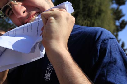 נוגסים בשאלון באשקלון. "העיכוב פגע בריכוז" (צילום: צפריר אביוב)