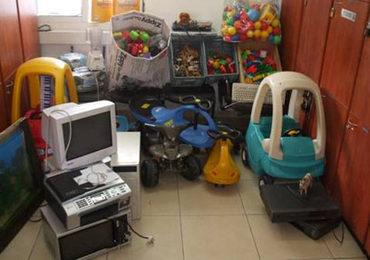 מחשב, טלוויזיה - והרבה צעצועים. השלל (צילום: באדיבות המשטרה)