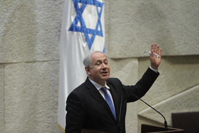 נתניהו על דוכן הנואמים (צילום: גיל יוחנן)