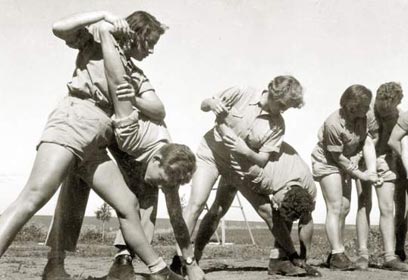 תצלומים 6-5: בעקבות מאורעות 1939-1936 הקים ארגון ה'הגנה' קבוצות נוער שעברו הכשרה טרום צבאית, כמו איתות דגלים והגנה עצמית.
