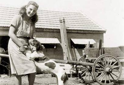 7. עם גמר הלימודים בבן-שמן, יצאו בוגרי הכפר למצוא עבודה בתחום החקלאות. מרים הגיעה למשק של אריקה פיינברג בכפר יהושע (בתצלום), וצבי, הגיע אף הוא לכפר יהושע והתקבל לעבודה במשק של שושנה ואברהם רוזנווסר