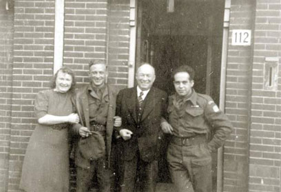 16. מספר צבי: "באחד הבקרים (1945), קיבלתי מברק מהוריי לחפש בהולנד קרוב משפחה: ארתור הירשברג. חבריו ליחידה של צבי עזרו בחיפוש, ואמנם בעליית גג אחד הבתים נמצאו הזוג הירשברג (בתצלום). ארתור היה זמר אופרה וביקש לשוב לעיר ניימיכן לעבודה ב'רדיו הילברסום'. העניין סודר