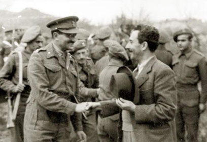 17. ביקור משה שרת אצל חיילי החטיבה היהודית הלוחמת ומפקדה - בריגדיר בנג'מין