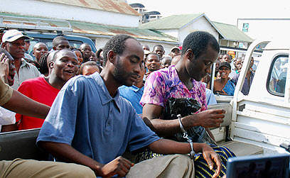 מושפלים ומבוזים. צ'ימבלנגה ומונג'זה אחרי מעצרם (צילום: רויטרס)