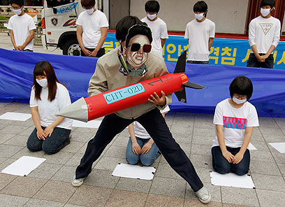 מחאה נגד הצפון בסיאול (צילום: רויטרס)