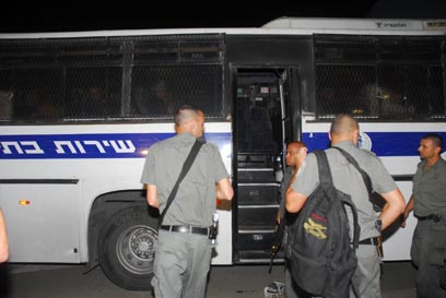 אוטובוס עם משתתפי המשט, שנלקחו לכלא באר-שבע (צילום: הרצל יוסף)