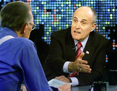 לארי קינג מראיין את ג'וליאני. השלייקעס הפכו למותג (צילום: AP)