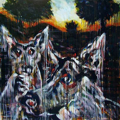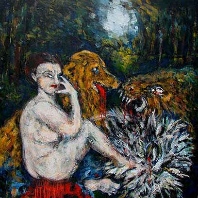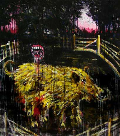 בחלוקה גסה מעט של אלה שאוהבים ציורים לבנים כאלו ואלה שלא, מובן שאני שייכת לאלה שלא. וכך גם וקסמן. וקסמן מצייר ציורים צבעוניים מאוד, שהגיבורים שלהם הם חזירים מדממים, זאבים מייללים או חולמים, והוא מתכתב בהומור וללא חשש עם יצירות קלאסיות כמו "בכחוס" של קאראוווג'ו, "ארוחת הבוקר על הדשא" של מאנה, או עם "מדמואזל ריביֶיר" של אינגר.