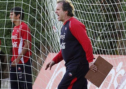 מרסלו ביילסה צועק באימון צ'ילה, צריך להצדיק את הכינוי (רויטרס)