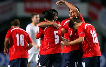 נבחרת צ'ילה חוגגת, ממוצע של שלושה שערים למשחק (גטי אימג'ס)