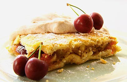 - ההגשה: מקציפים את השמנת עם הסוכר, עד שמתקבל מרקם של קצפת. מוסיפים את היוגורט והקינמון ומגישים עם העוגה.