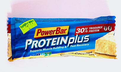 PowerBar Protein Plusחטיף על בסיס חלבונים בטעם וניל וקוקוס ומצופה בקרם בטעם שוקולד לבן