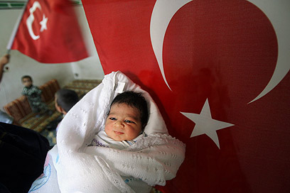 ארדואן הקטן ליד דגל טורקיה (צילום: AP)