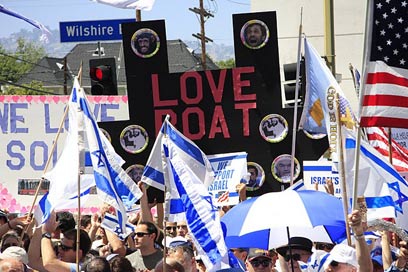 בעוד שברחבי העולם נערכות הפגנות נגד ישראל, בעקבות ההשתלטות על המשט לעזה, התקיימה הלילה (יום ב') עצרת תמיכה בישראל בלוס אנג'לס, בה השתתפו כ-5,000 בני-אדם. הנואם המרכזי בעצרת, שארגנה הקונסוליה הישראלית בעיר, היה מושל קליפורניה ארנולד שוורצנגר.