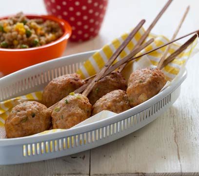 צורת ההגשה עושה את האפקט - הילדים אוחזים במקלות ואוכלים את הקציצות בהנאה, כאילו מדובר בסוכרייה על מקל.