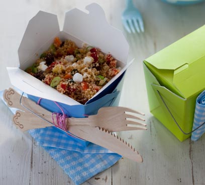 - מערבבים את הקוסקוס בעזרת מזלג, כדי לאוורר ולהפריד את הגרגרים. מוסיפים את הירקות המאודים ושאר החומרים ומערבבים. מתקנים תיבול.