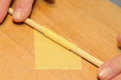 מגלגלים על המקל באלכסון כדי ליצור גלילים עם שפיצים בקצוות