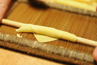 מגלגלים על מסרק הגרגנלי או מסרק רגיל כדי לייצר חריצים בפסטה