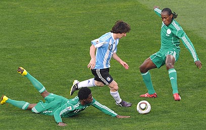 כבר בדקה ה-6' עלו התכולים לבנים על לוח התוצאות, אחרי כדור קרן שמצא את גבריאל היינצה חופשי לגמרי ברחבה, אבל משם הדרום אמריקאים פשוט לא יכלו להכניע את שוער ניגריה. ליונל מסי הציג משחק מצוין, אבל פעם אחר פעם, היה זה אניימה שמנע מכוכב ברצלונה לכבוש את שערו הראשון במונדיאל 2010. מקום לאופטימיות להמשך הדרך עבור מראדונה.