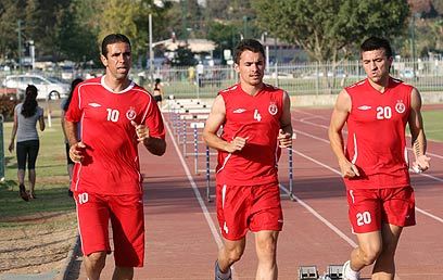 באדיר, בונדר ו-ורוצ'ינה באימון הכושר הראשון (צילום: אורן אהרוני)