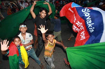 לוקחים את זה ברצינות. אוהדי כדורגל בדאקה (צילום: AP)