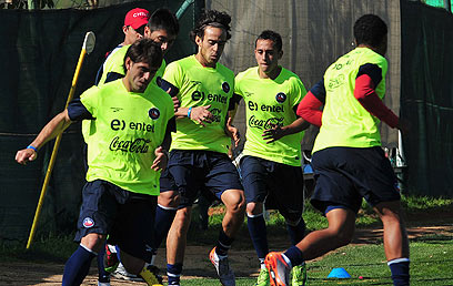 נבחרת צ'ילה מתכוננת למשחק הראשון (AFP)