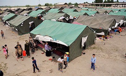 מחנה פליטים מאולתר של אוזבקים בדרום קירגיזסטן (צילום: AP)