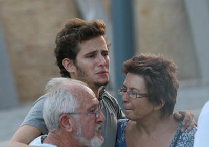 מור נפרד מהוריו בפתח תחנת המשטרה, הערב (צילום: שי וקנין)