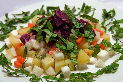 סלט ירקות שורש חצי אפויים בוויניגרט