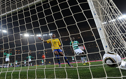 דקה 62 - שער! כדור רוחב מדויק של קאקה מאגף שמאל, מצא את אלנו ללא שמירה ברחבה, ובנגיעה קלה שם את הכדור ברשת, 0:3 לברזיל, שער שני בטורניר לשחקן גלאטסראיי.