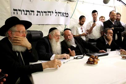ישיבת הסיעה באוהל החם (צילום: אבי מועלם)