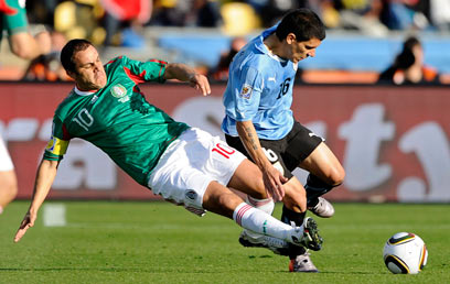 נפרדו בידידות. אורוגוואי ומכסיקו הן שתי העולות לשמינית הגמר מבית א' במונדיאל דרום אפריקה. נבחרת הסלסטה ניצחה היום (ג') 0:1 את מכסיקו משער מצוין של לואיס סוארס (הראשון שלו בטורניר), אבל זה לא מנע מנבחרת הטרי לעלות לשלב הבא בזכות ניצחונה של דרום אפריקה 1:2 על צרפת.