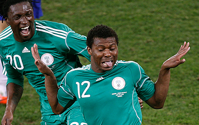 או'צה עושה חיקוי של 'סופר-איגלס'. נבחרת ניגריה (רויטרס)
