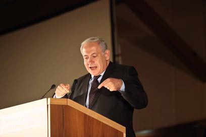 נתניהו, היום בכנס. "עשינו הכל לטובת הפלסטינים" (צילום: נועם מושקוביץ)