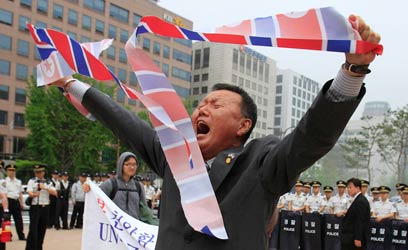דרום קורע. אזרח בסיאול מפגין נגד הצפון הקומוניסטי (צילום: AFP)