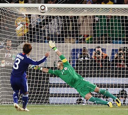 קייסוקה הונדה, השחקן המצטיין של יפן במונדיאל, היה חייב להבקיע על מנת להשאיר את נבחרתו במשחק והוא עשה זאת בבעיטה למרכז השער – 4:3.