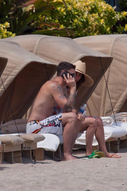 הזוג בהוואי, עונדים את מה שנחשד כטבעות הנישואים (צילום: Splashnews/א.ס.א.פ קראייטיב)