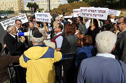 מדענים עולים מפגינים נגד קיצוץ בתקציב קליטתם (צילום: גיא תורג'מן)