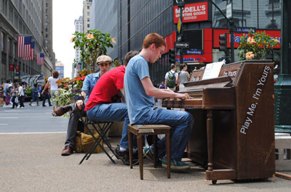 במנהטן, בברוקלין ובהארלם, בשדרות, בפארקים, בצדי הרחוב ובכיכרות, הפסתנרים ממתינים לכולם מ-9 בבוקר עד 10 בערב ומזמינים את העוברים והשבים לנגן עליהם. בלי מבחני כניסה, בלי ועדת קבלה.