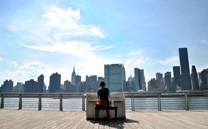 לא רק היפ-הופ. פסנתר על ההדסון (צילום: AFP)