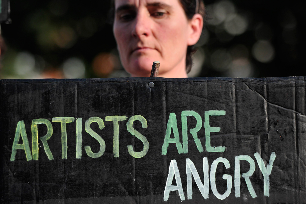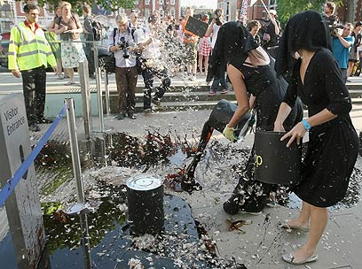 "האמנים כועסים". מתנגדים לתמיכת BP (צילום: AFP)