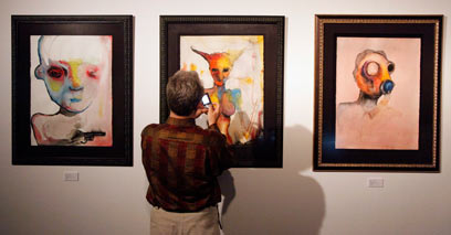 ציורים של מנסון ומבקרת מתבוננת. מפחיד (צילום: רויטרס)